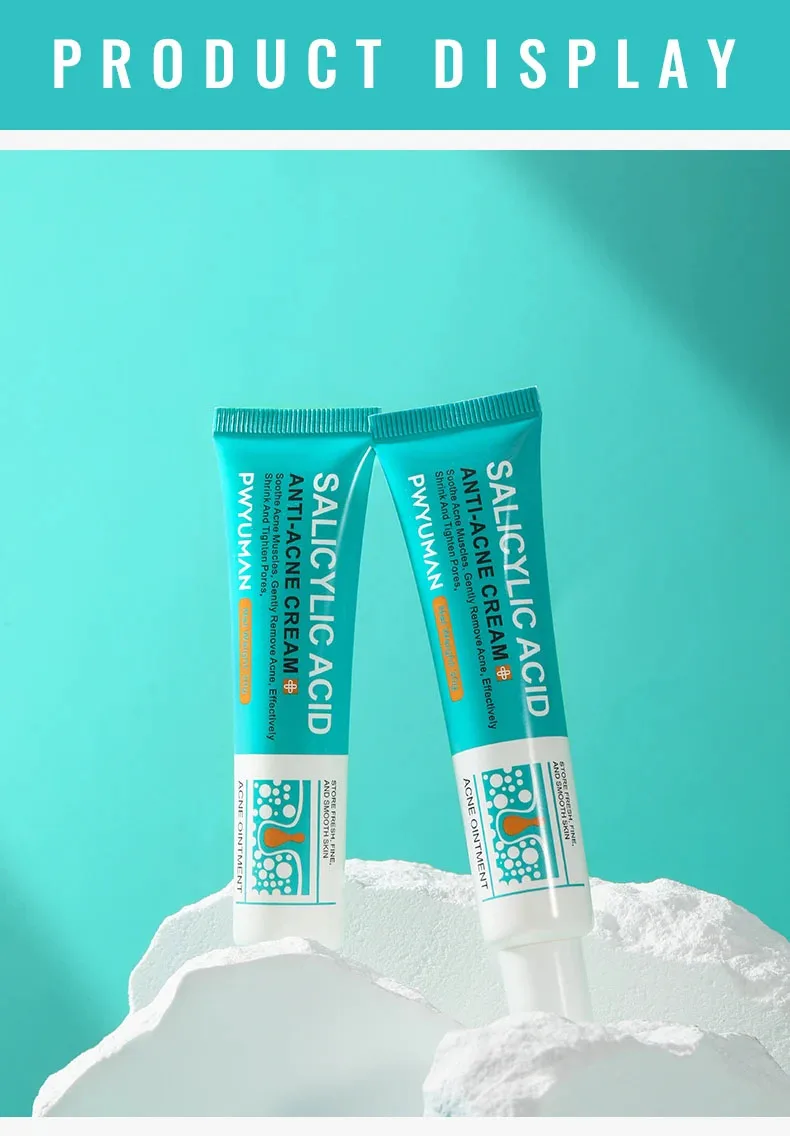Salicylic Acid Acne Treatment Face Cream Anti Pimples Spots Acne Removal Gel Repairing Scars Pores Shrink Oil Control Skin Care